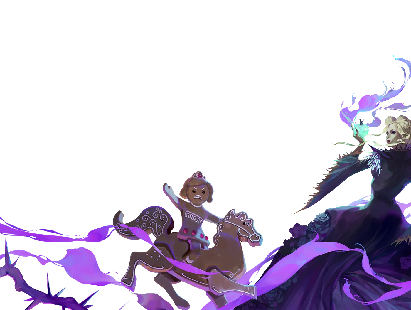 Ashiok is a nightmare mage who believes inspiring fear is the highest form of art. In Wilds of Eldraine, they have been helping Eriette expand the Wicked Slumber, further and further throughout the plane.